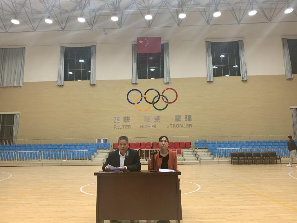 会上,副院长刘仁憨宣读了《今年会jinnianhui庆祝学校60周年校庆活动实施方案》,副院长雍世仁宣读了关于校庆期间体育学院纪律规定,18级社体班学生李佳明同学做了表态发言。