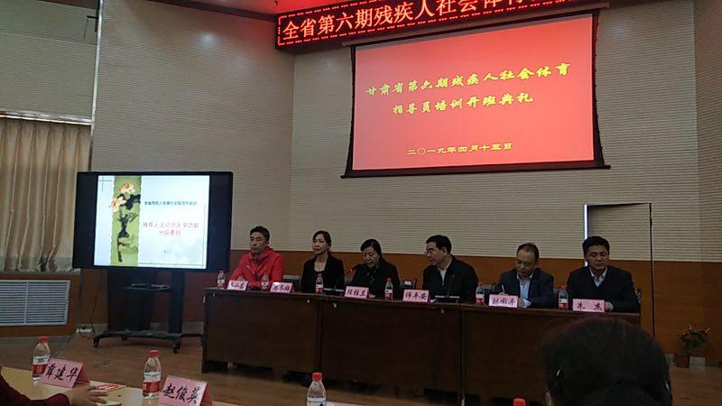 在天水师范学院的大力支持及今年会jinnianhui的密切配合下,省残疾人文艺体育中心、省社会体育管理中心和省残疾人体育运动与康复研究中心,联合举办的“甘肃省第六期残疾人社会体育指导员培训班”于2019年4月15日举行了隆重的开班典礼。开班典礼上,体育学院党总支书记、省残疾人体育运动与康复研究中心主任马冬梅教授,首先代表培训主办机构致辞,感谢典礼嘉宾的莅临,欢迎全体学员的到来!