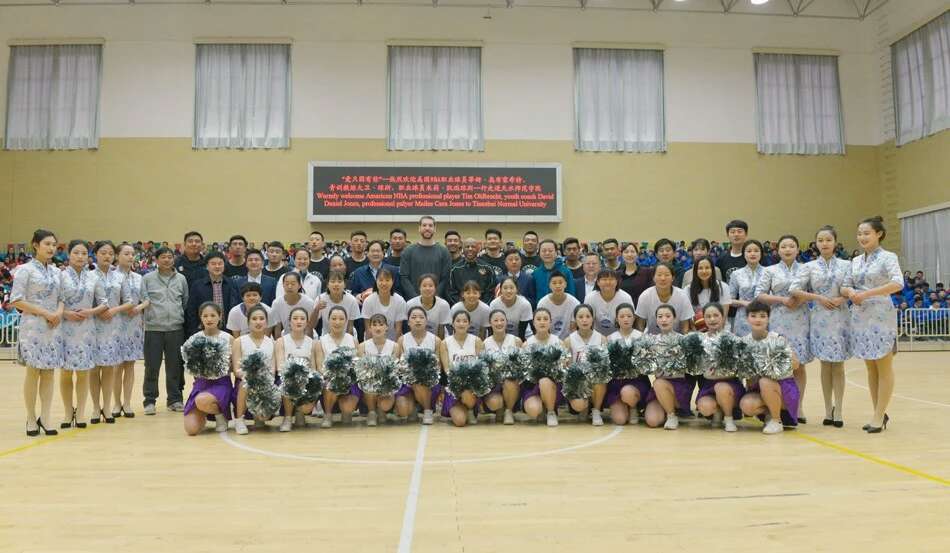 4月2日上午,在甘肃省美育教育促进会的促成下,“爱只因有你”美国NBA球星访问团走进天水师范学院综合体育馆,与今年会大学生进行篮球文化交流活动。