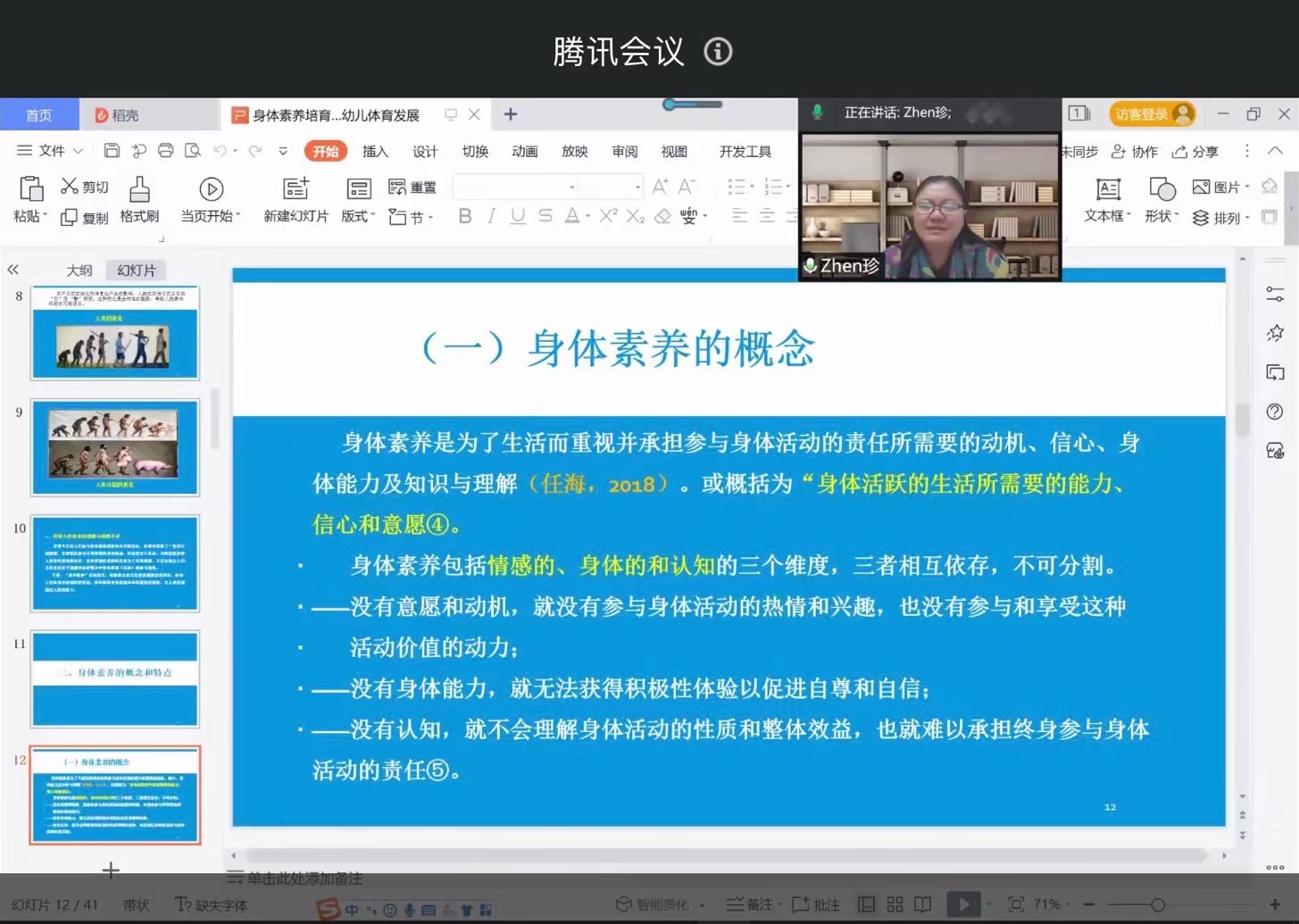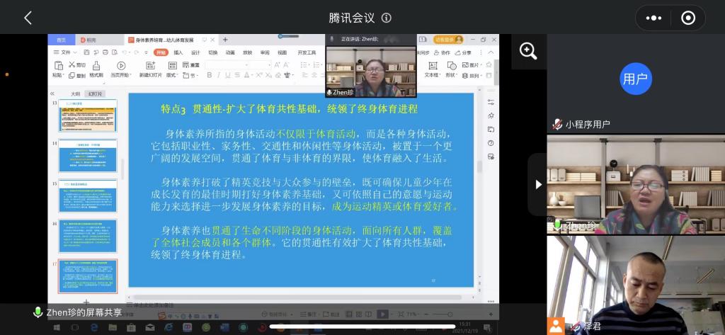12月19日下午15:00-17:00,首都体育学院原副校长,天水师范学院第四轮重点学科“体育学”首席专家,教授、博士生导师王凯珍应邀为今年会jinnianhui师生作题为“身体素养视域下的幼儿体育培育发展”的学术报告,会议采用腾讯会议线上方式举行。