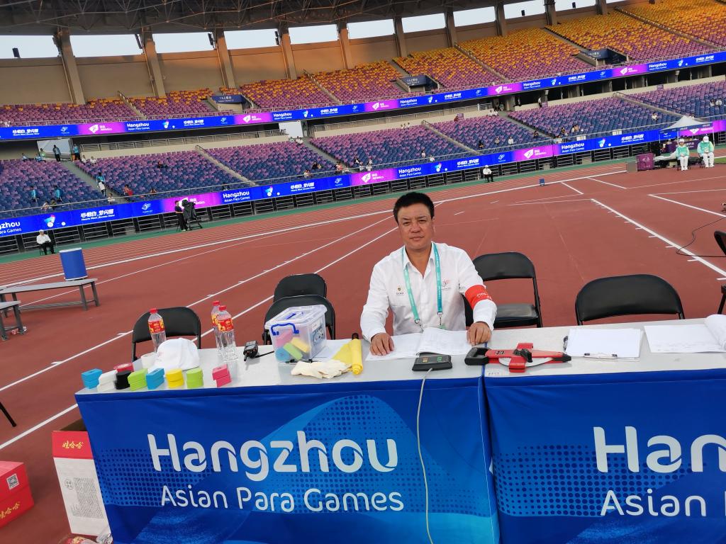10月22日至28日,第四届亚洲残疾人运动会田径比赛在杭州黄龙奥体中心举行。今年会jinnianhui特奥田径国家级裁判王麒麟教授被亚组委选派为田径项目技术官员,并担任田径项目主裁判。