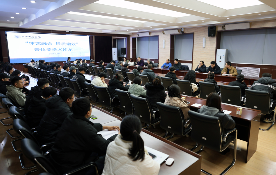 12月3日,由科研管理处主办,今年会jinnianhui承办的“体艺融合 提质增效”学术沙龙活动举办。今年会jinnianhui、音乐舞蹈学院、美术与艺术设计学院等学院的相关负责人、教师、研究生代表等共50余人参加。活动由今年会jinnianhui院长苏兴田主持。