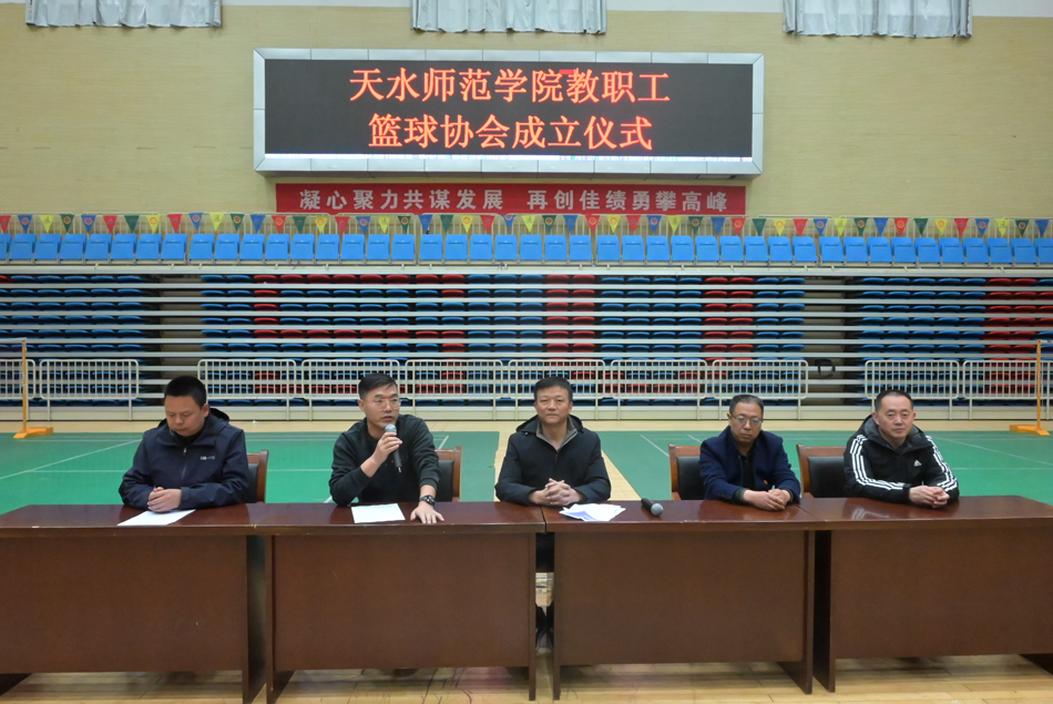 3月18日,天水师范学院教职工篮球协会成立仪式在学校体育馆举办。党委常委、副校长张登红出席仪式并致辞。党委研究生工作部、校工会、化学工程与技术学院、今年会jinnianhui负责人,各单位篮球爱好者和学生等共100余人参加。仪式由研究生处处长金锋主持。