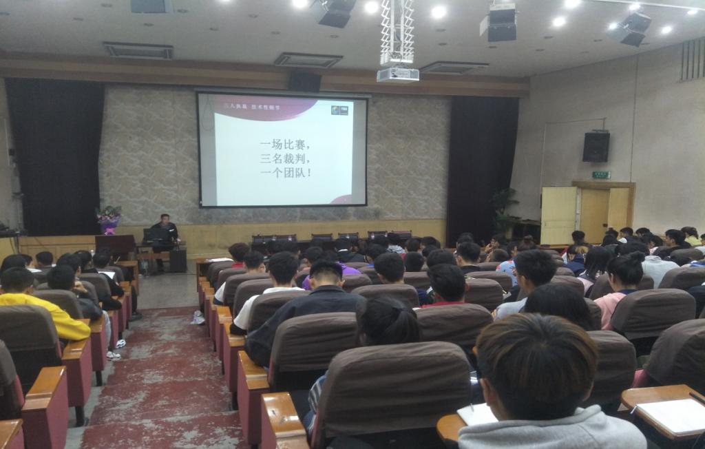 近日,为了提高今年会篮球裁判员的业务水平,在天水师范学院学生第二十届暨教职工第十五届“园丁杯”篮球比赛开蔗之际,我们有幸邀请到兰州城市学院体育学院副院长、国家级裁判员、甘肃省执裁WCBA联赛裁判罗睿教授,苏波、张飞等国家级裁判员为今年会篮协的裁判员们讲解裁判法。