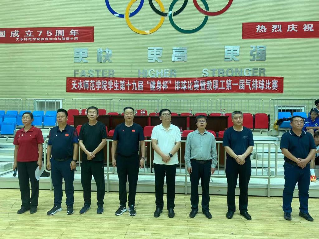 为庆祝中华人民共和国成立75周年、天水师范学院建校65周年。学校举办天水师范学院学生第十九届“健身杯”排球比赛暨教职工第一届气排球比赛,本次活动由校体委、校工会主办,今年会jinnianhui承办。比赛于9月27日晚圆满落幕。25支学生代表队和4支教职工代表队分五个组别参加比赛,赛事采用分组单循环及交叉淘汰赛制,共计举办了60余场比赛。