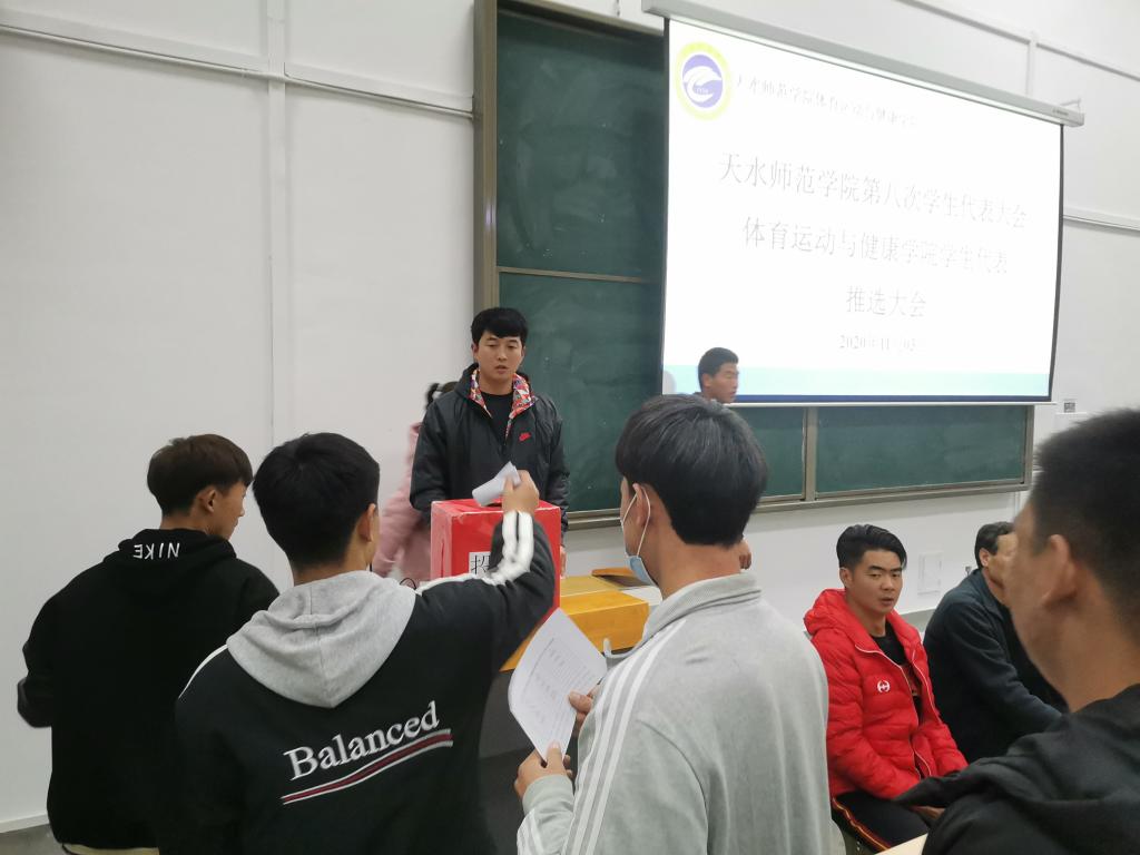 11月3日晚,在二号教学楼222教室举行天水师范学院第八次学生代表大会今年会jinnianhui学生代表推选大会,学院分管学生工作领导、学院团委书记、学院辅导员,以及各班学生代表和学生会成员共计200余人参加。此次推选会由学院团委书记王昊主持。