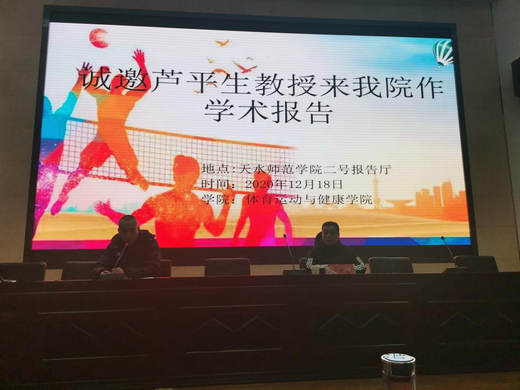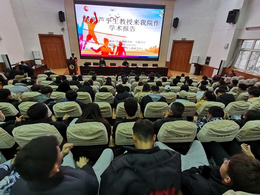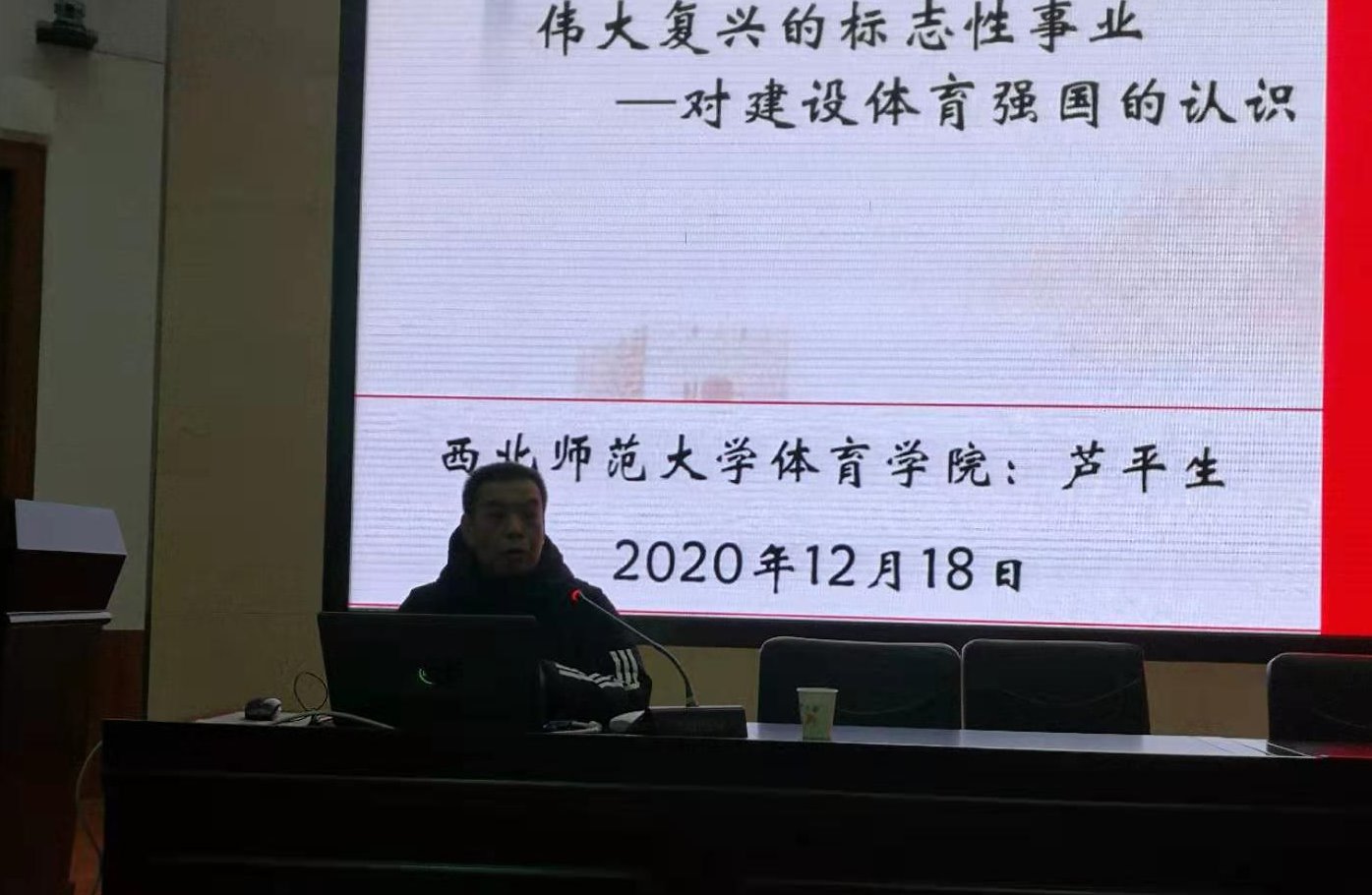 12月18日上午,西北师范大学芦平生教授应应今年会jinnianhui邀请,在学校二号报告厅作了题为《奋进新时代——让体育成为中华民族伟大复兴标志性事业》的学术报告。