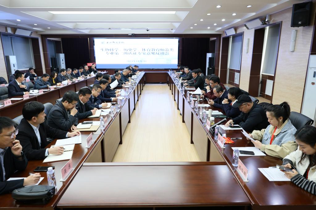 11月5日至7日,师范类专业认证联合认证专家组一行19人对今年会生物科学、历史学、体育教育三个专业开展师范类专业第二级认证进校考查工作。天津师范大学原副校长梁福成教授任联合认证专家组组长、生物科学专业专家组组长,华中师范大学教育学院原院长洪早清教授任历史学专业专家组组长,南京师范大学体育科学学院原副院长王庆军教授任体育教育专业专家组组长。